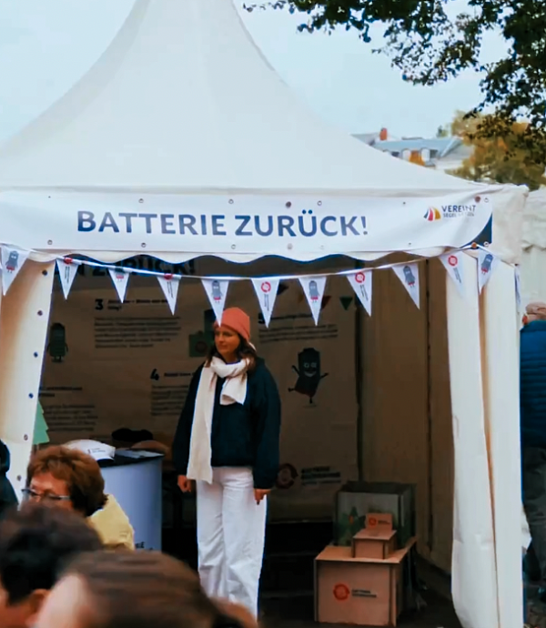 Was Verbraucherinnen und Verbraucher auch bedenken sollten: Batterien und Akkus sind ein wichtiger Bestandteil in unserem Alltag, aber dabei kein ganz leichtes Produkt. Die Plastikhülle verrottet nicht, es sind kritische Rohstoffe enthalten, giftige Chemikalien können bei falscher Behandlung austreten und die Inhaltsstoffe müssen zudem mit hohem Aufwand getrennt recycelt werden. Auch wenn Batterien heute weniger Schadstoffe enthalten als früher, ist deren korrekte Entsorgung mit einigen Herausforderungen verbunden. Wir möchten das Bewusstsein dafür schärfen, was für einen komplexen Speicher die meisten Menschen da jeden Tag selbstverständlich in der Hand halten oder benutzen. Außerdem klären wir sie darüber auf, dass gefährliche Batterie-Fehlwürfe im Hausmüll oder in der Biotonne unbedingt vermieden werden müssen, damit keine Brände im Entsorgungsprozess entstehen.