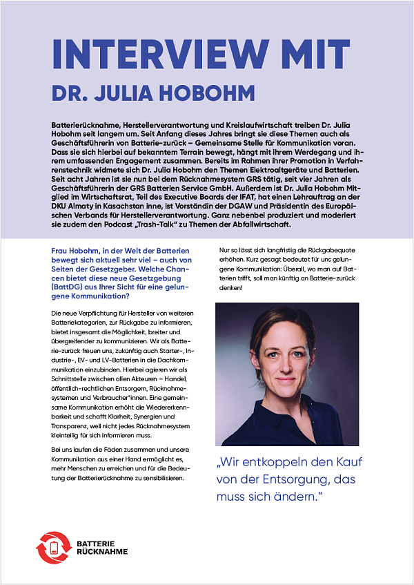 Wir haben mit ihr über ihr Engagement im Beirat von Batterie-zurück, über Vorgaben wie die Visible Fee sowie über Herstellerverantwortung gesprochen.
